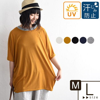 Tシャツ 汗染み防止 UVカット加工 ドルマンTシャツ カットソー 【メール便可】 /紫外線対策 半袖 五分袖 無地 ゆったり 体型カバー トップス 大人 ナチュラル Ms,Ls,/春 夏 レディース 1920SS0704,x04,